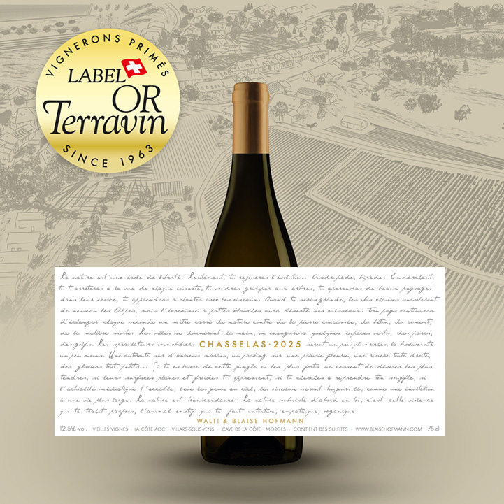 Depuis 2018, ces vins ont chaque année obtenu le Label Terravin Or. La récolte est vinifiée par l’œnologue Rodrigo Banto à la Cave de la Côte, élue Cave suisse de l’année 2019.