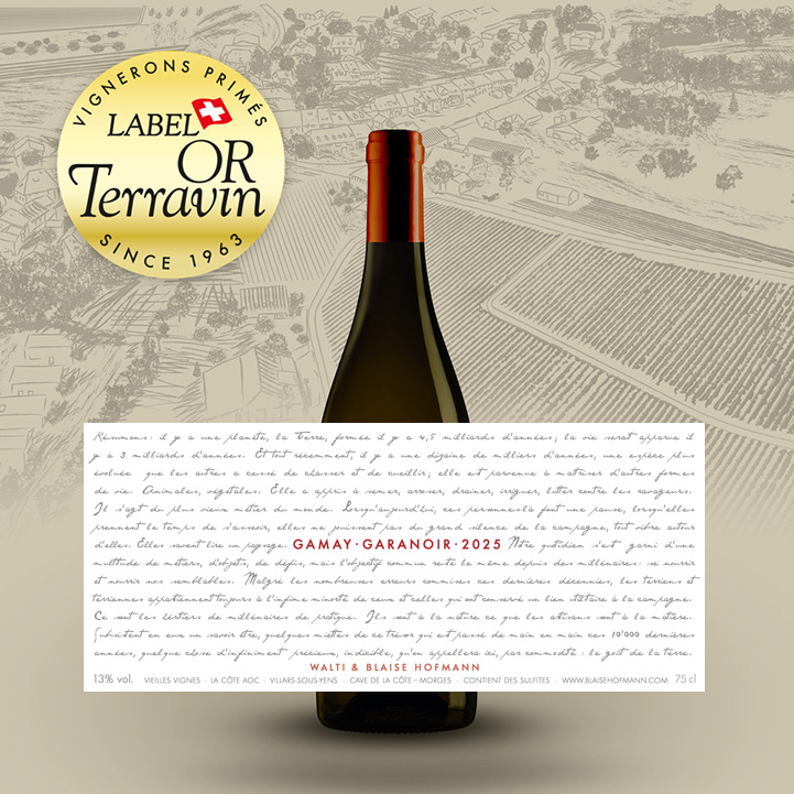 Gamay-garanoir grand cru 2025, vieilles vignes, label Terravin Or